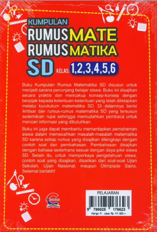 Buku Kumpulan Rumus Matematika SD disusun untuk menjadi sarana penunjang belajar siswa. Buku ini disajikan secara praktis dan mencakup konsep-konsep dengan berpijak kepada ketentuan-ketentuan yang telah ditetapkan melalui kurukulum matematika SD. Di dalamnya berisi ikhtisar dan rumus-rumus matematika SD yang tersusun sedemikian rupa sehingga memudahkan pembaca untuk mencari informasi yang dibutuhkan.