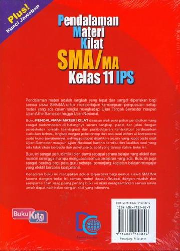 Buku PENDALAMAN MATERI KILAT disusun oleh para pakar pendidikan yang sangat berkompeten di bidangnya secara lengkap, padat dan jelas dengan pendekatan tematik terintegrasi dan pembelajaran kontekstual berdasarkan kurikulum terbaru, lengkap dengan peta konsep dan soal-soal latihan uji kompetensi serta kunci jawabannya, sehingga dapat dijadikan acuan yang tepat pada saat Ujian Semester maupun Ujian Nasional karena kondisi dan kualitas soal yang ada tidak akan berbeda dari paket-paket soal yang tersaji dalam buku ini.