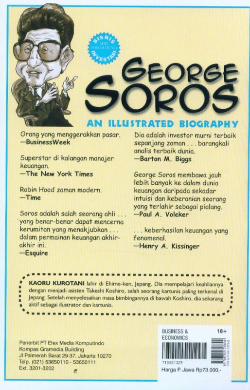 Buku pencerahan tentang kehidupan salah seorang guru keuangan paling menakjubkan dewasa ini. Sebagai otak keuangan dan filantropis internasional terkenal, George Soros, yang dilahirkan di Hungaria, adalah salah seorang investor paling tangguh dan peraup keuntungan paling banyak di dunia. Dijuluki Orang yang Menggerakkan Pasar, Soros adalah seorang ahli keuangan, spekulan yang luar biasa, dan filantropis yang murah hati. Buku mengasyikkan ini menyajikan rangkaian sejarah kehidupan Sorosbagaimana keluarganya lari dari kejaran Nazi, dan bagaimana Soros menggunakan ketajaman bisnisnya hingga menjadi seorang miliarder. Ketenarannya menghasilkan lompatan besar pada tahun 1992 ketika dia mengumpulkan laba lebih dari $1 miliar karena kehancuran pound Inggris.