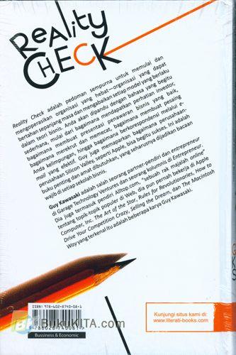 Reality Check adalah pedoman sempurna untuk memulai dan mengoperasikan organisasi yang hebat--organisasi yang dapat bertahan sepanjang masa dan mengabaikan setiap model yang berlaku dalam teori bisnis. Anda akan dipandu dengan bahas ayang begitu sederhana, mulai dari bagaimana mendapatkan perhatian investor, bagaimana membuat presentasi penawaran bisnis yang baik, bagaimana merekrut dan memecat, bagaimana membuat pesaing Anda kelimpuhan, hingga agaimana berkorespondensi melalui e-mail yang efektif. Guy juga memaparkan bagaimana perusahaan-perusahaan Silicon Vallery, seperti Apple, bisa begitu sukses. Ini adalah buku penting dan amat dibutuhkan, yang seharusnya dijadikan bacaan wajib di setiap sekolah bisnis.