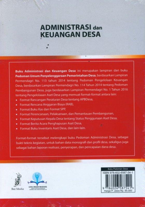 Buku Administrasi dan Keuangan Desa ini merupakan lampiran dari buku Pedoman Umum Penyelenggaraan Pemerintahan Desa, berdasarkan Lampiran Permendagri No. 113 tahun 2014 tentang Pedoman Pengelolaan Keuangan Desa, berdasarkan Lampiran Permendagri No. 114 Tahun 2014 tentang Pedoman Pembangunan Desa, juga berdasarkan Lampiran Permendagri No. 1 Tahun 2016 tentang Pengelolaaan Aset Desa yang memuat format-format antara lain: