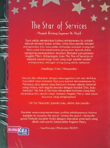 Sesuatu ilka dilakukan dengan kesungguhan hatl dan terfokus, Insyaallah akan makslmal. Apa pun, bentuk dari pekerjaan itu. Makanya, ada aiaran yang berbunyl tnnama akmalu blnnlyatl yang Intlnya, niati segala sesuatu dengan ibadah. Dan, buku berjudul The Star of Services merupakan tuntunan yang bisa meniadlkan kita meraih mimpi. Selamat Angelia Merry, atas karya bukunya yang menginsplrasi.