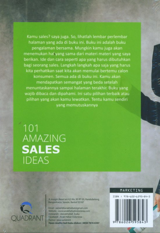 Kamu sales? saya juga. So, lihatlah lembar perlembar halaman yang ada di buku ini. Buku ini adalah buku pengalaman bersama. Mungkin kamu juga akan menemukan hal yang sama dari materi materi yang saya berikan. Ide dan cara seperti apa yang harus dibutuhkan bagi seorang sales. Langkah langkah apa saja yang harus kita perhatikan saat kita akan memulai bertemu calon konsumen. Semua ada di buku ini. Kamu akan mendapatkan semangat yang beda setelah menuntaskannya sampai halaman terakhir. Buku yang wajib dibaca dan dipahami. Ini satu pilihan terbaik atau pilihan yang akan kamu lewatkan. Tentu kamu sendiri yang memutuskannya.