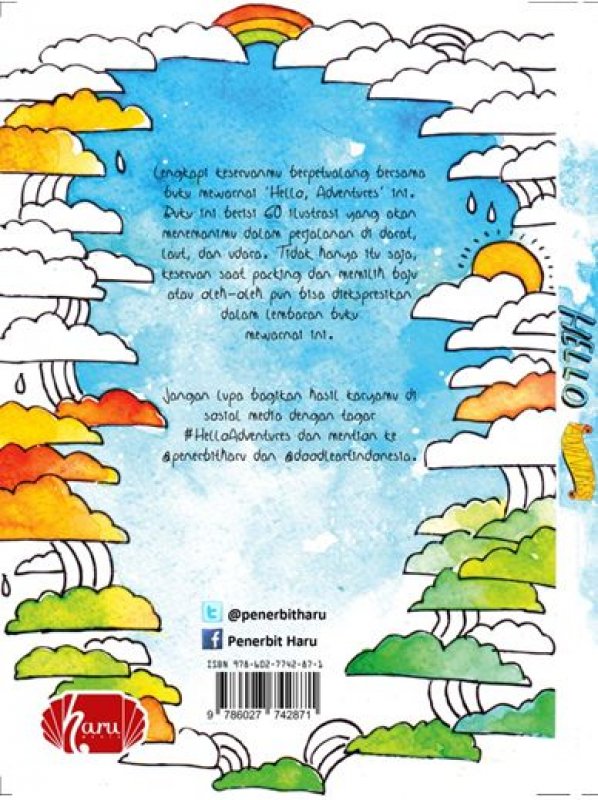 Jangan lupa bagikan hasil karyamu di sosial media dengan tagar #HelloAdventuresID dan mention ke @penerbitharu dan @doodleartindonesia.
