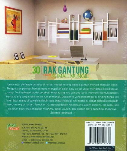 Hebatnya lagi, rak model ini dapat diaplikasikan pada semua ruang di rumah. Temukan 30 inspirasi desain rak gantung dalam buku ini. Tak lupa, juga disajikan spesifikasi material, finishing, detail ukuran, dan kisaran biaya pada tiap desainnya. Selamat berkreasi!