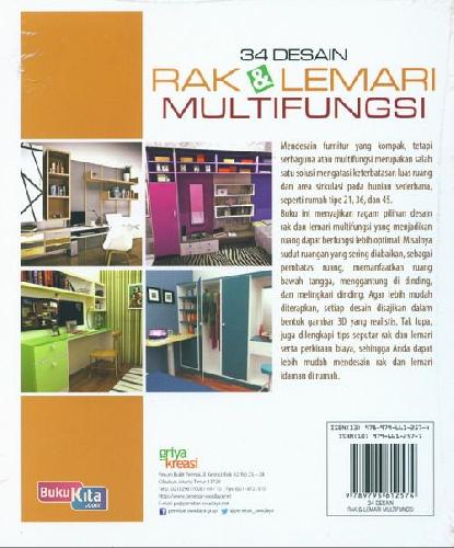 Buku ini menyajikan ragam pilihan desain rak dan lemari multifungsi yang menjadikan ruang dapat berfungsi lebih optimal. Misalnya sudut ruangan yang sering diabaikan, sebagai pembatas ruang, memanfaatkan ruang bawah tangga, menggantung di dinding, dan melingkari dinding. Agar lebih mudah diterapkan, setiap desain disajikan dalam bentuk gambar 3D yang realistis. Tak lupa, juga dilengkapi tips seputar rak dan lemari serta perkiraan biaya, sehingga Anda dapat lebih mudah mendesain rak dan lemari idaman di rumah.
