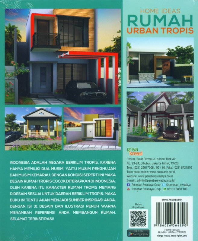 INDONESIA ADALAH NEGARA BERIKLIM TROPIS, KARENA HANYA MEMILIKI DUA MUSIM, YAITU MUSIM PENGHUJAN DAN MUSIM KEMARAU. DENGAN KONDISI SEPERTI INI MAKA DESAIN RUMAH TROPIS COCOK DITERAPKAN DI INDONESIA. OLEH KARENA ITU KARAKTER RUMAH TROPIS MEMANG DIDESAIN SESUAI UNTUK DAERAH BERIKLIM TROPIS. MAKA BUKU INI TENTU AKAN MENJADI SUMBER INSPIRASI ANDA. DENGAN ISI 31 DESAIN DAN ILUSTRASI PENUH WARNA MENAMBAH REFERENSI ANDA MEMBANGUN RUMAH.