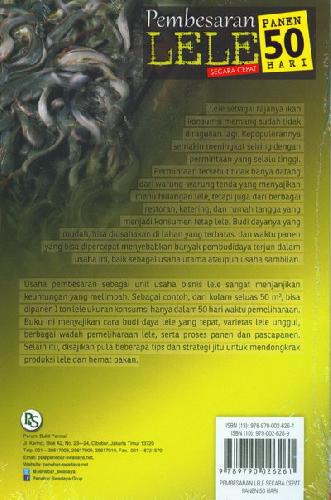 Buku ini menyajikan cara budi daya lele yang tepat, varietas lele unggul, berbagai wadah pemeliharaan lele, serta proses panen dan pascapanen. Selain itu, disajikan pula beberapa tips dan strategi jitu untuk mendongkrak