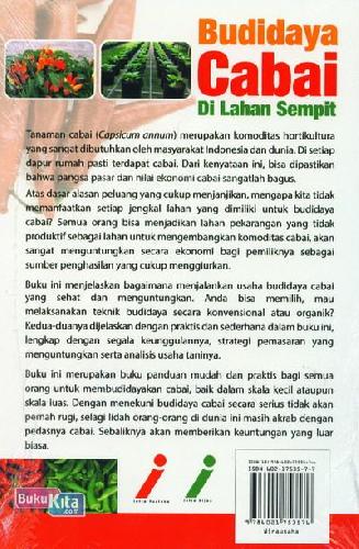 Buku ini menjelaskan bagaimana menjalankan usaha budidaya cabai yang sehat dan menguntungkan. Anda bisa memilih, mau melaksanakan teknik budidaya secara konvensional atau organik? Kedua-duanya dijelaskan dengan praktis dan sederhana dalam buku ini, lengkap dengan segala keunggulannya, strategi pemasaran yang menguntungkan serta analisis usaha taninya.
