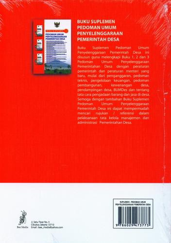 Buku Suplemen Pedoman Umum Penyelenggaraan Pemerintah Desa ini disusun guna melengkapi Buku 1, 2 dan 3 Pedoman Umum Penyelenggaraan Pemerintahan Desa dengan peraturan pemerintah dan peraturan menteri yang baru, mulai dari penganggaran, pedoman teknis, pengelolaan keuangan, pedoman