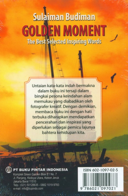 Untaian kata-kata indah bermakna dalam buku ini tersaji dalam bingkai pesona diabadikan oleh fotografer kreatif. Dengan demikian, membaca buku ini dengan hati terbuka diharapkan mendapatkan pencerahan dan inspirasi yang diperlukan sebagai pemicu lajunya bahtera kehidupan kita.