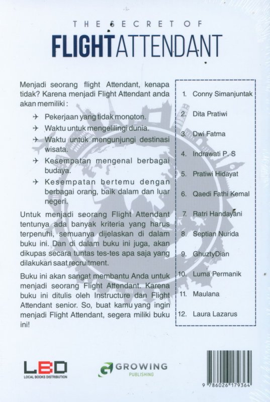 Buku ini akan sangat membantu Anda untuk menjadi seorang Flight Attendant. Karena buku ini ditulis oleh Instructure dan Flight Attendant senior.
