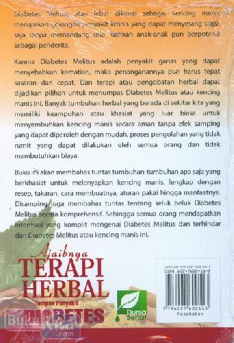 Buku ini akan membahas tuntas tumbuhan-tumbuhan apa saja yang berkhasiat untuk melenyapkan kencing manis, lengkap dengan resep, takaran, cara membuatnya, aturan pakai hingga manfaatnya. Disamping juga membahas tuntas tentang seluk beluk Diabetes Melitus secara komprehensif. Sehingga semua orang mendapatkan informasi yang komplit mengenai Diabetes Melitus dan terhindar dari Diabtes Melitus atau kencing manis ini.