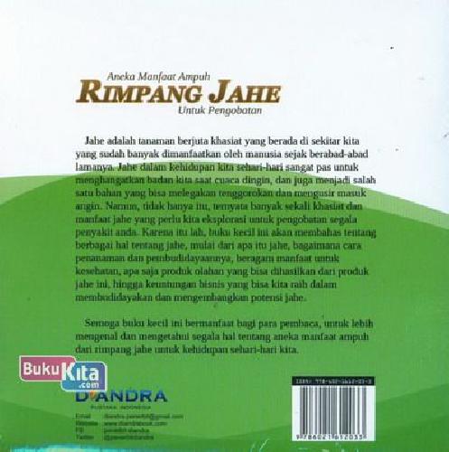 Semoga buku ini bermanfaat bagi para pembaca, untuk lebih mengenal dan mengetahui segala hal tentang aneka manfaat ampuh dari rimpang jahe untuk kehidupan sehari-hari kita.