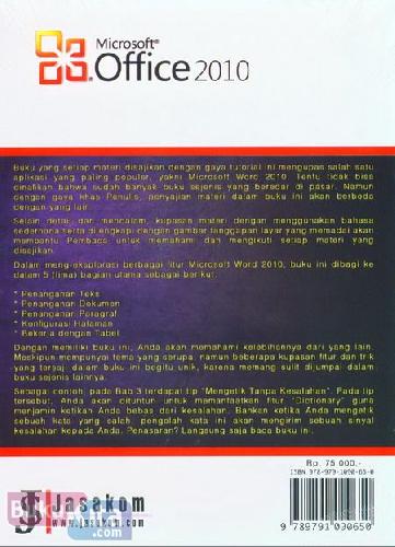 Buku yang setiap materi disajikan dengan gaya tutorial ini mengupas salah satu aplikasi yang paling populer, yakni Microsoft Word 2010. Tentu tidak bisa dinafikan bahwa sudah banyak buku sejenis yang beredar di pasar. Namun dengan gaya khas Penulis, penyajian materi dalam buku ini akan berbeda dengan yang lain.