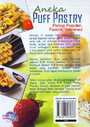 Selain mengungkap rahasia pembuatan Puff Pastry, Buku Aneka Puff Pastry Paling Populer, Favorit, Istimewa ini juga menyertakan berbagai resep istimewa kue-kue lezat berbalut Puff Pastry yang yuummiiii.