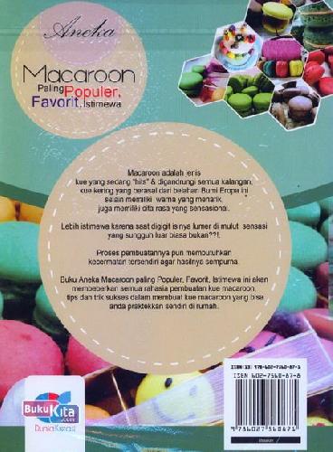 Buku Aneka Macaroni paling Populer, Favorit, Istimewa ini akan membeberkan semua rahasia pembuatan kue macaroon, tips dan trik sukses dalam membuat kue macaroon yang biasa anda praktekkan sendiri di rumah.