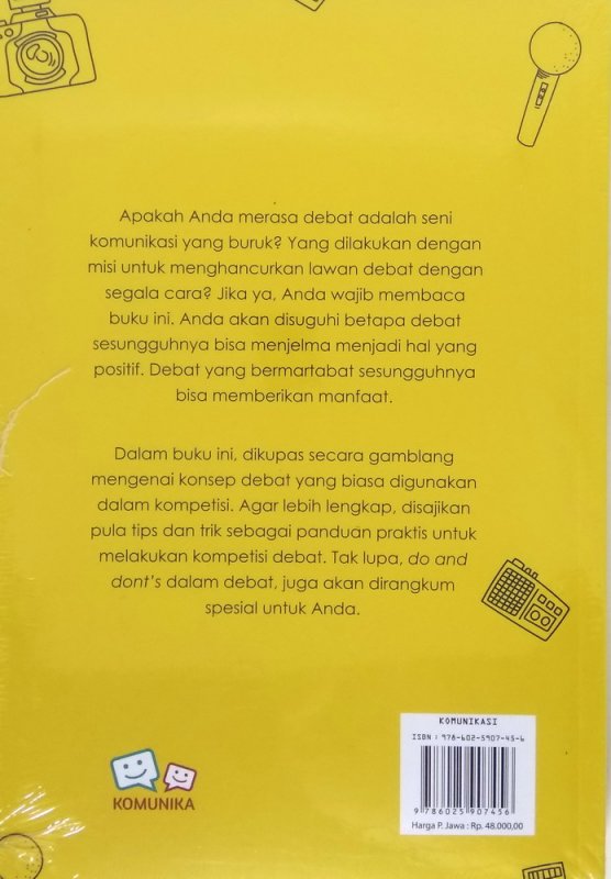Apakah Anda merasa debat adalah seni komunikasi yang buruk? Yang dilakukan dengan misi untuk menghancurkan lawan debat dengan segala cara? Jika ya, Anda wajib membaca buku ini. Anda akan disuguhi betapa debat sesungguhnya bias menjelma menjadi hal yang positif. Debat yang bermartabat sesungguhnya bisa memberikan manfaat.