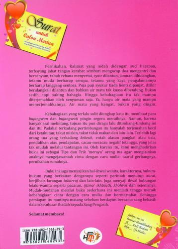 Buku ini juga menyajikan hal-ihwal wanita, karakternya, hukum- hukum yang berkaitan dengannya seperti perintah mcnutup aurat, berjilbab, larangan tabarruj dan Iain-Iain. |uga menyajl ihwal hubungan lelaki-wanita seperti pacaran, ijtima' ikhtilath, kholwat dan sejenisnya. Mudah-mudahan melalui buku sederhana ini menjadi tangga meraih kebahagiaan cinta dengan cara mulia dan bermartabat. Sehingga persiapan itu nantinya matang sebelum berdayun bersama sang kekasih dalam ketulusan ibadah kepada Sang Pengasih.