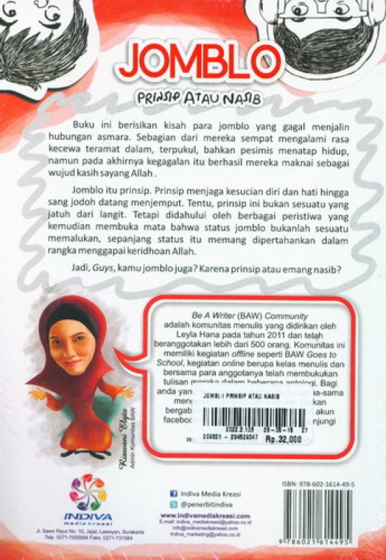 Buku ini berisikan kisah para jomblo yang gagal menjalin hubungan asmara. Sebagian dari mereka sempat mengalami rasa kecewa teramat dalam, terpukul, bahkan pesimis menatap hidup, namun pada akhirnya kegagalan itu berhasil mereka maknai sebagai wujud kasih sayang Allah untuk mendidik mereka menjadi hamba-Nya yang lebih bijak dalam menyikapi hidup. Tak hanya jomblo karena nasib, di sini juga ada kisah mereka yang menjadikan status jomblo sebagai perlambang prinsip yang teguh. Prinsip menjaga kesucian diri dan hati hingga sang jodoh datang menjemput. Tentu, prinsip ini bukan sesuatu yang jatuh dari langit atau muncul secara tiba-tiba. Tetapi didahului oleh berbagai peristiwa yang kemudian membuka mata bahwa status jomblo bukanlah sesuatu yang hina dan memalukan, sepanjang status itu memang dipertahankan dalam rangka menggapai keridhoan Allah. Jadi, Guys, kamu jomblo juga? Karena prinsip atau emang nasib?