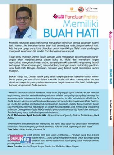 " Memiliki keturunan adalah dambaan setiap insan. Dipanggil "ayah" adalah sebutan terindah bagi seorang pria dan melahirkan dengan lancar adalah saat paling agung bagi seorang ibu. Namun ternyata tidak semua insan mendapat kesempatan itu. Ada rahasia besar dibalik itu. Dr Taufik Jamaan, dengan sangat indah dan komprehensif menuturkan bagaimana ikhtiar horizontal-medis dan vertikal-spiritual untuk mendapatkan buah hati. Melalui buku ini penulis bukan saja mem bantu hadirnya kebahagian di tengah keluarga tetapi juga mendorong tercapainya Millenium Development Goals (MDGs) melalui penurunan kematian ibu hamil dan menyusui." Satu buku yang harus hadir disetiap rumah Indonesia.