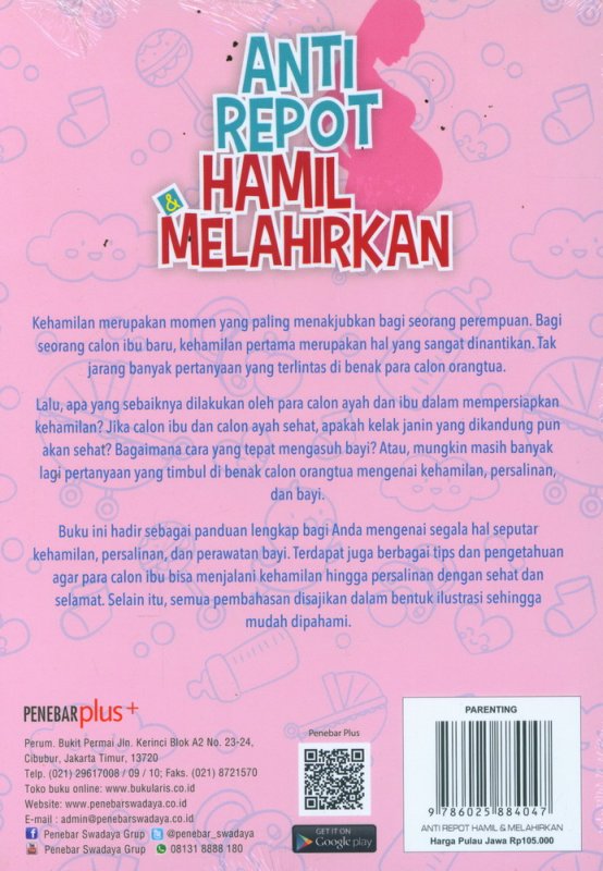 Buku ini hadir sebagai panduan lengkap bagi Anda mengenai segala hal seputar kehamilan, persalinan, dan perawatan bayi. Terdapat juga berbagai tips dan pengetahuan agar para calon ibu bisa menjalani kehamilan hingga persalinan d.engan sehat dan selamat. Selain itu, semua pembahasan disajikan dalam bentuk ilustrasi sehingga mudah dipahami.