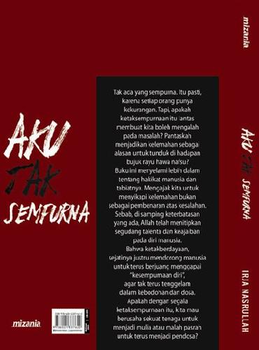 Buku ini menyelami lebih dalam tentang hakikat manusia dan tabiatnya. Mengajak kita untuk menyikapi kelemahan bukan sebagai pembenaran atas kesalahan. Sebab, di samping keterbatasan yang ada, Allah telah menitipkan segudang talenta dan keajaiban pada diri manusia. Bahwa ketakberdayaan, sejatinya justru mendorong manusia untuk terus berjuang menggapai "kesempurnaan diri", agar tak terus tenggelam dalam kebodohan dan dosa.
