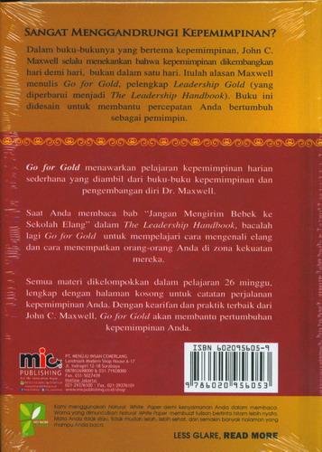 Dalam buku-bukunya yang bertema kepemimpinan, John C, Maxwell selalu menekankan bahwa kepemimpinan dikembangkan hari demi hari, bukan dalam satu hari. Itulah alasan Maxwell menulis Go for Gold, pelengkap Leadership Gold (yang diperbarui menjadi The Leadership Handbook). Buku ini didesain untuk membantu percepatan Anda bertumbuh sebagai pemimpin.