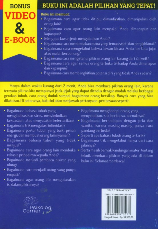 Serta masih banyak kandungan materi tentang teknik membaca pikiran yang ada di dalam buku ini. Selamat membaca!