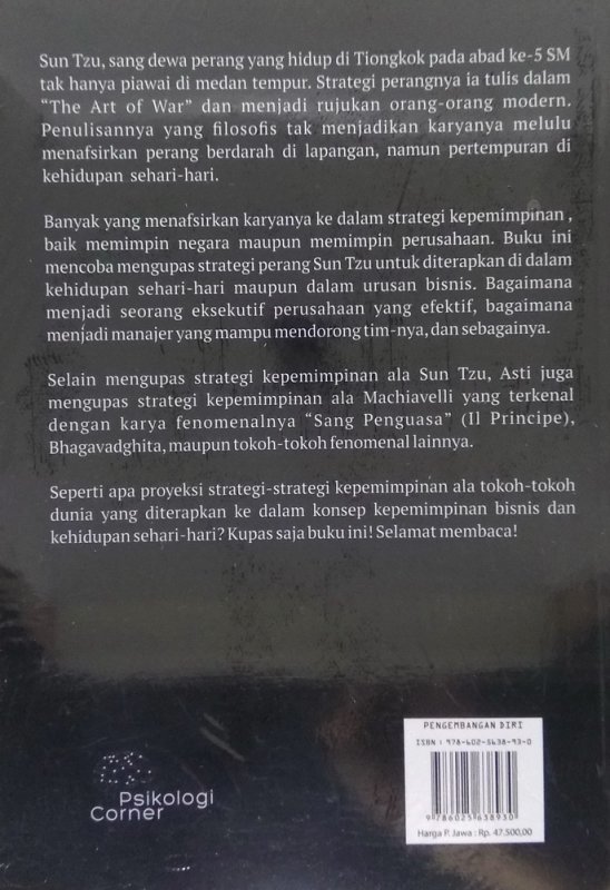 Selain mengupas strategi kepemimpinan ala Sun Tzu, Asti juga mengupas strategi kepemimpinan ala Machiavelli yang terkenal dengan karya fenomenalnya "Sang Penguasa" (II Principe), Bhagavadghita, maupun tokoh-tokoh fenomenal lainnya. Seperti apa proyeksi strategi-strategi kepemimpinan ala tokoh-tokoh dunia yang diterapkan ke dalam konsep kepemimpinan bisnis dan kehidupan sehari-hari? Kupas saja buku ini!