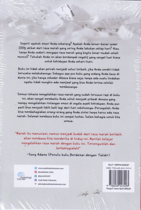 Semua rahasia mengalahkan rasa marah yang sudah tersusun rapi di buku ini, akan sangat membantu Anda untuk menjadi pribadi dewasa yang mampu mengalahkan rintangan emosi di segala aspek kehidupan. Anda pun pasti bisa menjadi lebih baik lagi dari hari sebelumnya. Percayalah, Anda bisa membahagiakan orang-orang yang Anda cintai tanpa harus ada rasa marah. Selamat membaca buku ini sampai tuntas. Salam bahagia untuk kita semua.