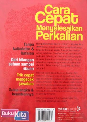 Trik-trik cepat dalam buku ini disusun dari perkalian bilangan satuan hingga ribuan. Kamu juga bisa berlatih seberapa cepat kemampuanmu dalam perkalian. Tidak perlu takut salah, karena buku ini juga mengajurkan cara mengecek hasil perkalian secara cepat. Selama ini, kamu juga bisa menunjukkan kebolehanmu bermain sulap angka ala pesulap ternama.