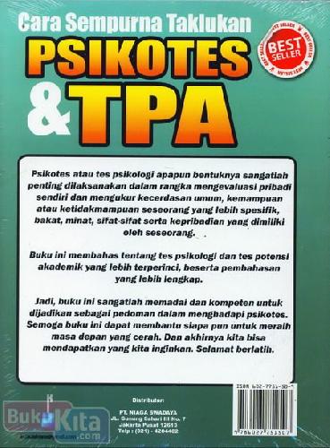 Jadi, buku ini sangatlah memadai dan kompten untuk dijadikan sebagai pedoman dalam menghadapi psikotes. Semoga buku ini dapat membantu siapa pun untuk meraih masa depan yang cerah. Dan akhirnya kita bisa mendapatkan yang kita inginkan.