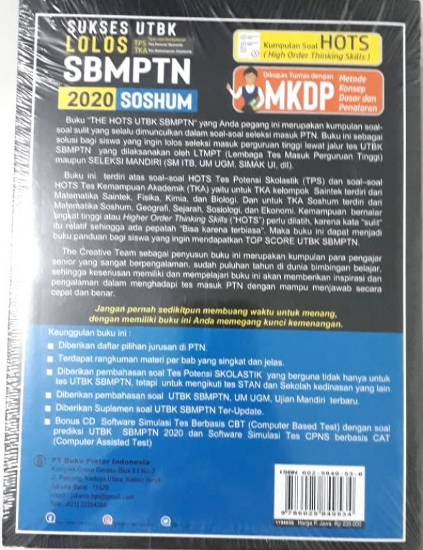 Buku THE HOTS UTBK SBMPTN yang Anda pegang ini merupakan kumpulan soal-soal sulit yang selalu dimunculkan dalam soal-soal seleksi masuk PTN. Buku ini sebagai solusi bagi siswa yang ingin lolos seleksi masuk perguruan tinggi lewat jalur tes UTBK SBMPTN yang dilaksanakan oleh LTMPT (Lembaga Tes Masuk Perguruan Tinggi) maupun SELEKSI MANDIRI (SM ITB, UM UGM, SIMAK UI, dll)