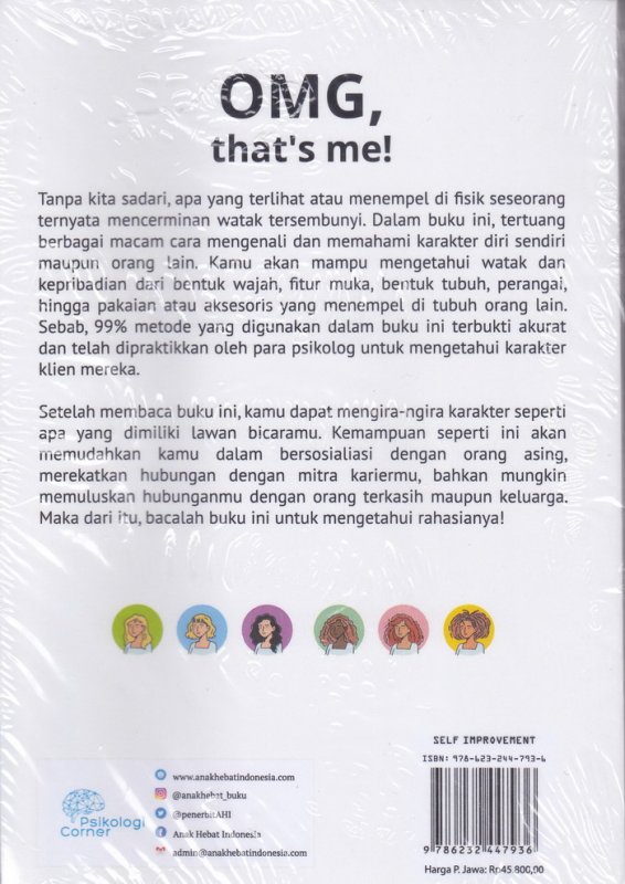 Tanpa kita sadari, apa yang terlihat atau menempel di fisik seseorang ternyata mencerminan watak tersembunyi. Dalam buku ini, tertuang berbagai macam cara mengenali dan memahami karakter diri sendiri maupun orang Lain.Kamu akan mampu mengetahui watak dan kepribadian dari bentuk wajah, fitur muka, bentuk tubuh, perangai, hingga pakaian atau aksesoris yang menempel di tubuh orang lain. Sebab, 99% metode yang digunakan dalam buku ini terbukti akurat dan telah dipraktikkan oleh para psikolog untuk mengetahui karakter klien mereka.