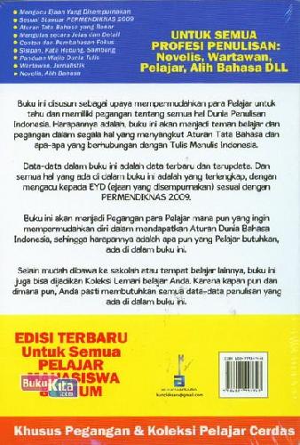 Buku ini disusun sebagai upaya mempermudahkan para Pelajar untuk tahu dan memiliki pegangan tentang semua hal Dunia Penulisan Indonesia. Harapannya adalah, buku ini akan menjadi teman belajar dan pegangan dalam segala hal yang menyangkut Aturan Tata Bahasa dan apa-apa yang berhubungan dengan Tulis Menulis Indonesia.