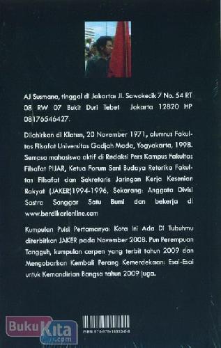 AJ Susmana, tinggal di Jakarta: Jl. Sawokecik 7 No. 54 RT 08 RW 07 Tebet Jakarta 12820 HP 08176546427.