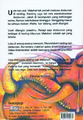 Luka di awang-awang merapuh. Menyetubuhi ranting dan dedaunan. Sementara matahari galau di kemerahannya: Galau di kemerahan adalah bara yang gagal menghentikan usia.
