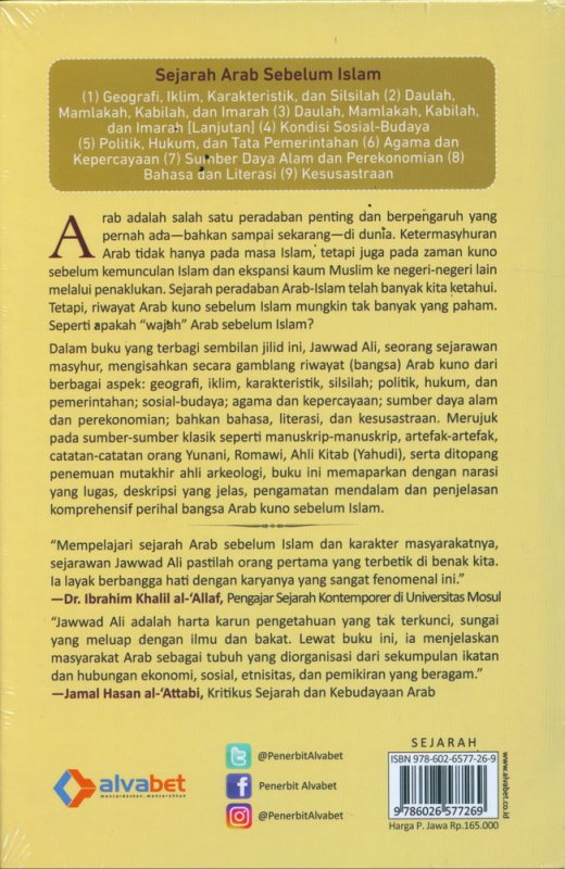 Jawwad Ali adalah harta karun pengetahuan yang tak terkunci, sungai yang meluap dengan ilmu dan bakat. Lewat buku ini, ia menjelaskan masyarakat Arab sebagai tubuh yang diorganisasi dari sekumpulan ikatan dan hubungan ekonomi, sosial, etnisitas, dan pemikiran yang beragam.