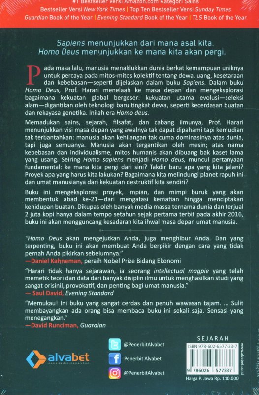 "Harari tidak hanya sejarawan, ia seorang intellectual magpie yang telah memetik teori dan data dari banyak disiplin ilmu untuk menghasilkan studi yang sangat orisinil, provokatif, dan penting bagi umat manusia."
