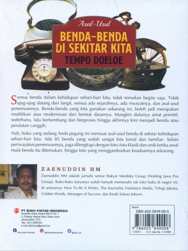 Nah, buku yang sedang Anda pegang ini memuat asal-usul benda di sekitar kehidupan sehari-hari kita. Ada 85 benda yang sudah sangat kita kenal dan familiar. Selain periwayatan penemuannya, juga dilengkapi dengan foto-foto klasik dan unik ketika awal mula benda itu ditemukan, hingga foto yang menggambarkan keadaannya sekarang.