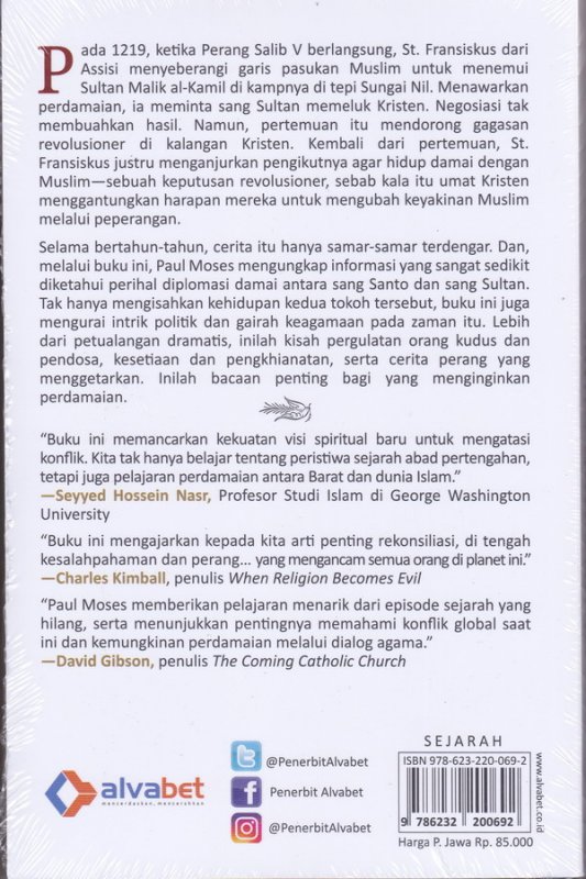 Selama bertahun-tahun, cerita itu hanya samar-samar terdengar. Dan, melalui buku ini, Paul Moses mengungkap informasi yang sangat sedikit diketahui perihal diplomasi damai antara sang Santo dan sang Sultan. Tak hanya mengisahkan kehidupan kedua tokoh tersebut, buku ini juga mengurai intrik politik dan gairah keagamaan pada zaman itu. Lebih dari petualangan dramatis, inilah kisah pergulatan orang kudus dan pendosa, kesetiaan dan pengkhianatan, serta cerita perang yang menggetarkan. Inilah bacaan penting bagi yang menginginkan perdamaian antara Barat dan dunia Islam.
