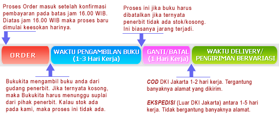 Itulah beberapa pertanyaan yang sering kami terima dari member yang baru melakukan pemesanan di Toko Buku Online www.bukukita.com. Tak kenal maka Tak sayang slogan ini lah yg pas untuk menjawab semua pertanyaan member/customer tersebut. Berikut kami informasikan Time Line Processing jika anda bertransaksi pembelian buku melalui web Bukukita.com